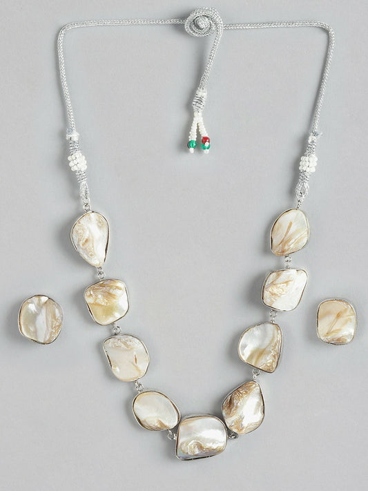 Silver-Plated Pearl Studded Necklace & Earrings Set
