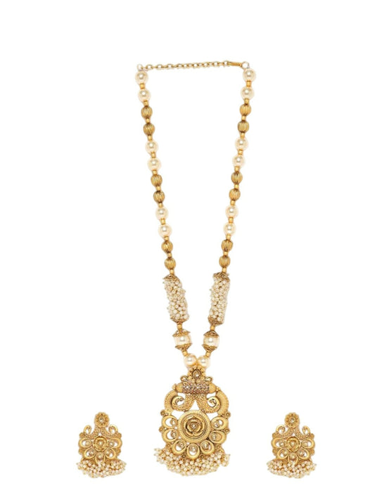 Buy Women’s Gold Plated Kundan Pearl Jewellery Set | Traditional Necklace & Earrings – Indiaista