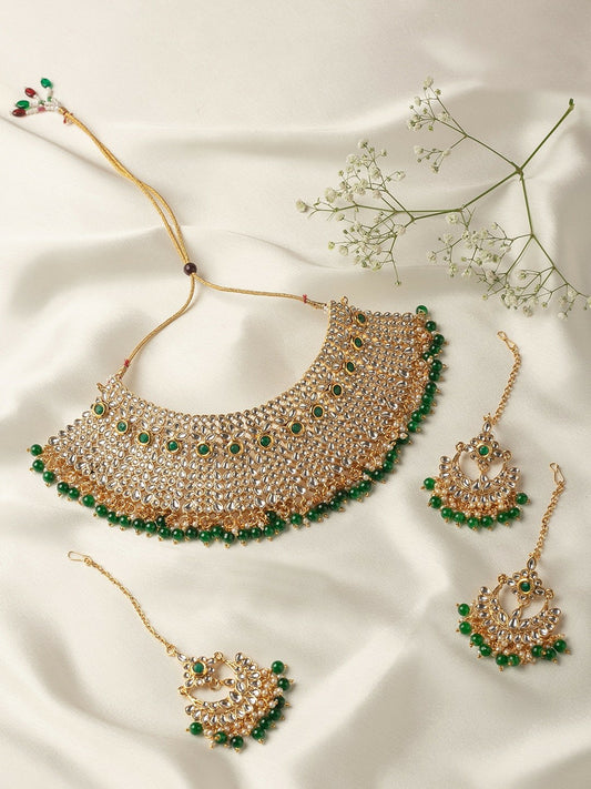 Women Green Gold-Plated Kundan Bridal Jewellery Set | Indiaista