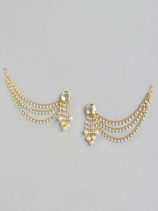 Gold Plated Kundan & Beaded Chandbali Earrings