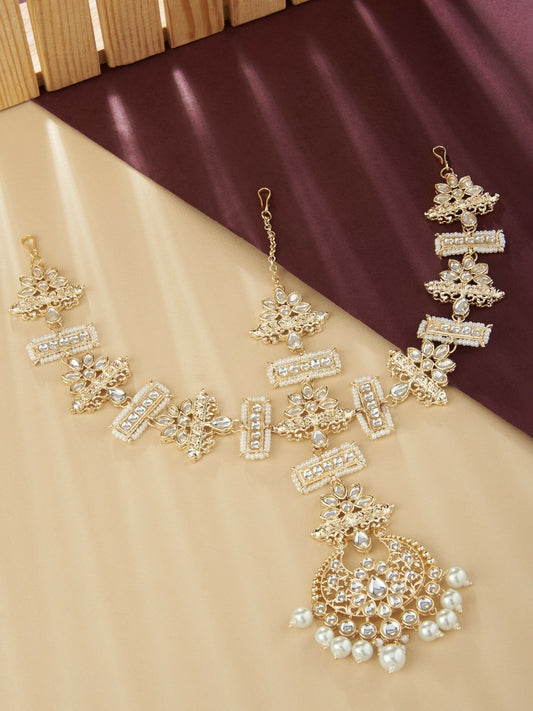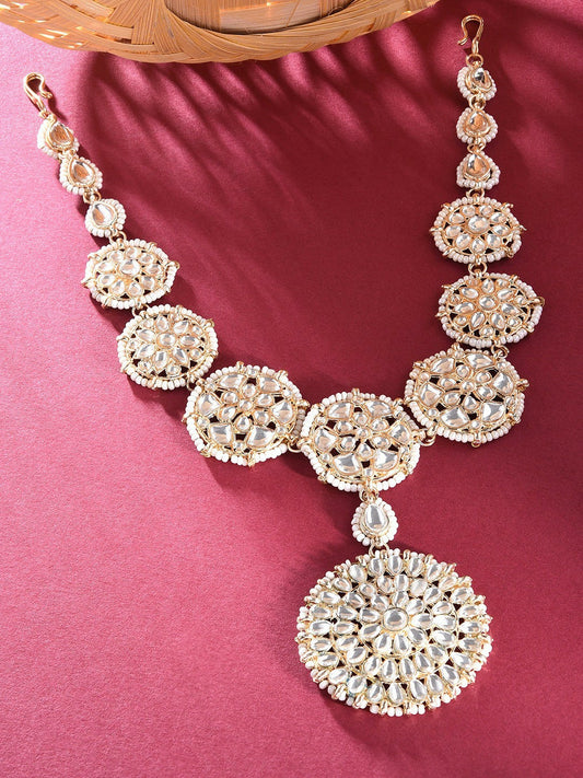 Gold-Plated Kundan Matha Patti for Women – Traditional Maang Tikka with White Stones | Indiaista