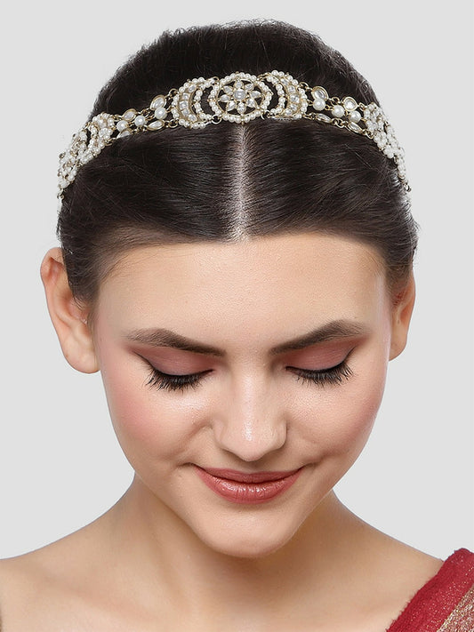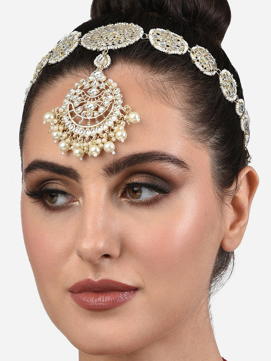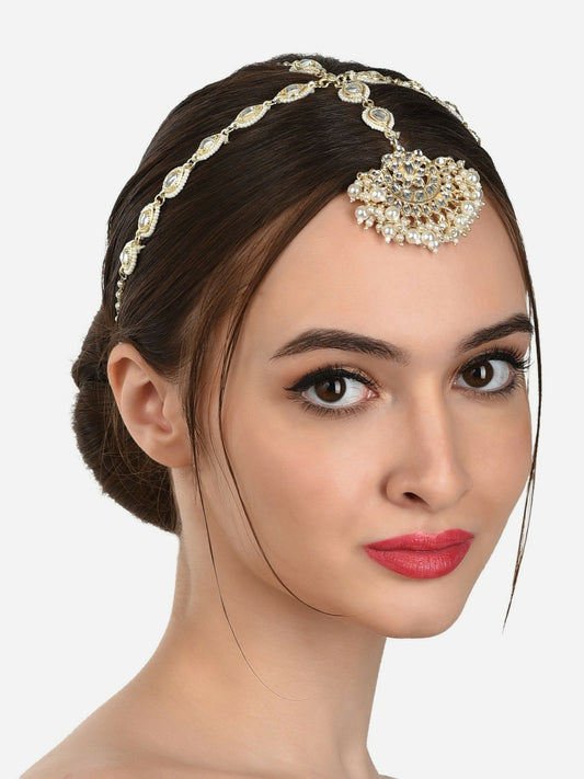 Gold-Plated Kundan & Pearl Matha Patti for Women – Bridal & Ethnic Hair Accessory | Indiaista