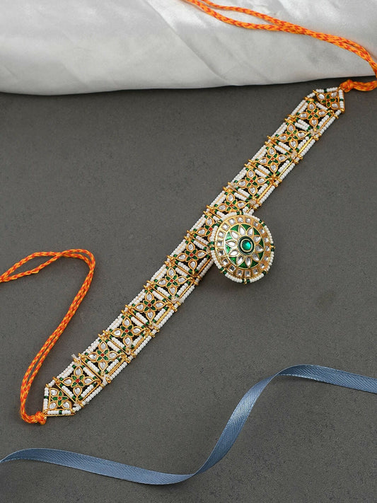 Green & White Gold-Plated Matha Patti – Jadau Stone & Beaded Bridal Headpiece | Indiaista