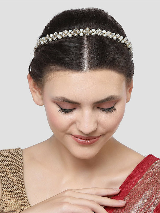 Gold-Plated Kundan Maatha Patti for Women – Pearl Beaded Bridal Hair Accessory | Indiaista