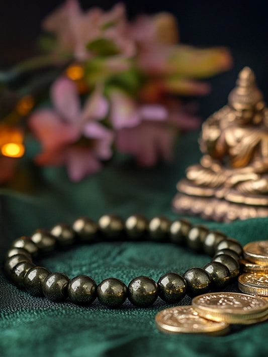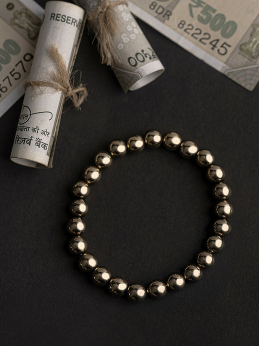 Gold-Toned Elasticated Men’s Bracelet with Pyrite – Alloy Slip-On Golden Bracelet | Indiaista