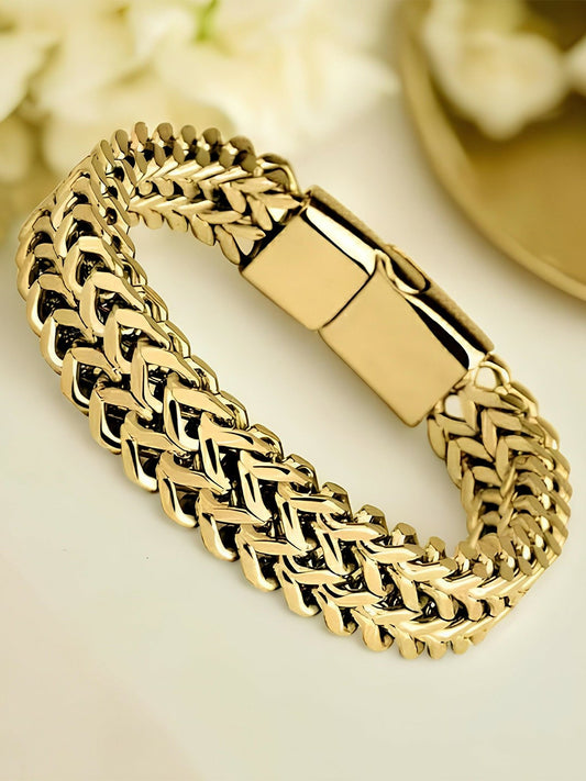 Gold-Toned Unisex Link Bracelet for Men – Stainless Steel, Gold-Plated with Magnetic Closure | Indiaista