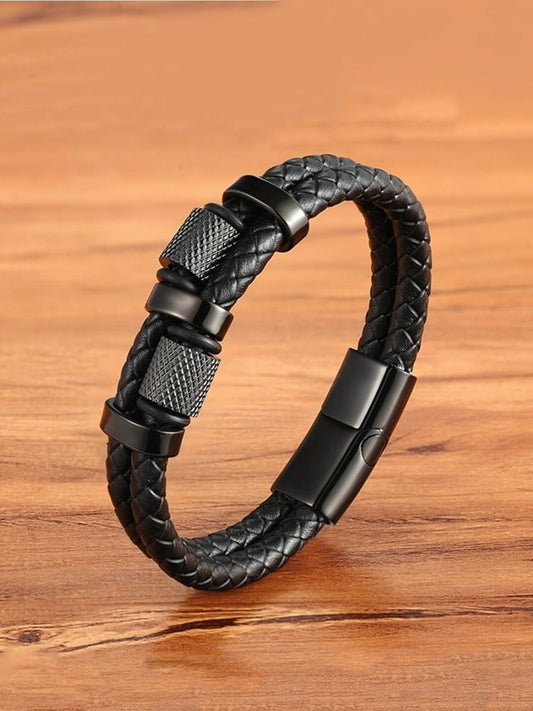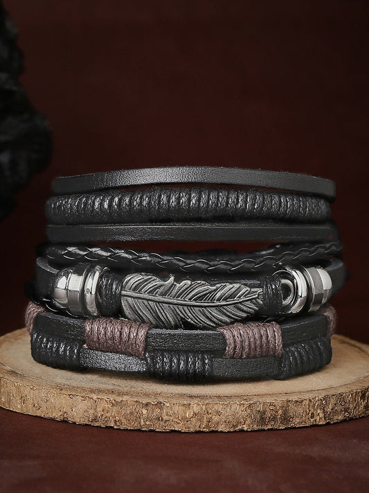 Men's Black Leather Wraparound Bracelet – Stylish Leather Bracelet with Foldover Closure | Indiaista