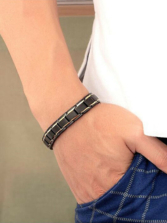 Men's Black & Gold-Toned Link Bio Energy Bracelet – Stainless Steel, Foldover Closure | Indiaista