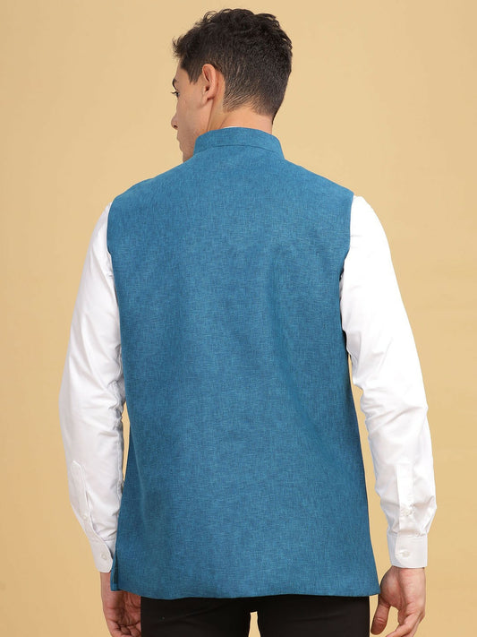 Buy Blue Solid Woven Cotton Nehru Jacket for Men – Stylish & Comfortable | Indiaista