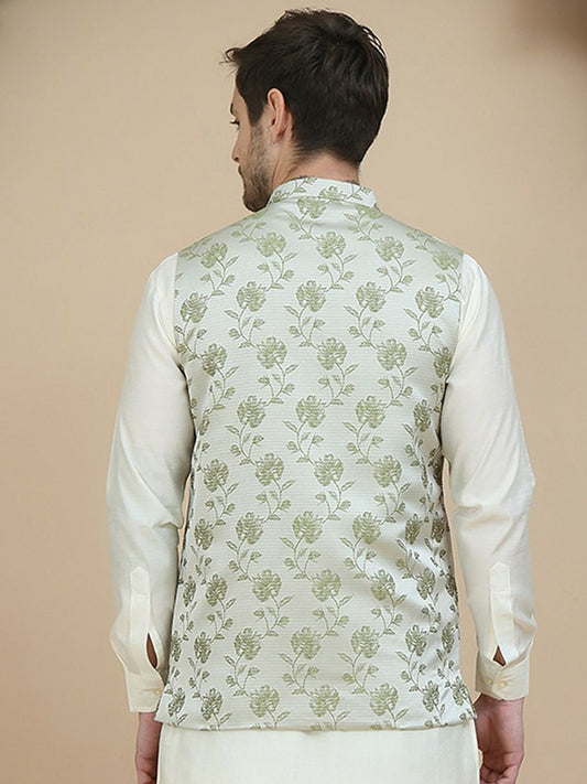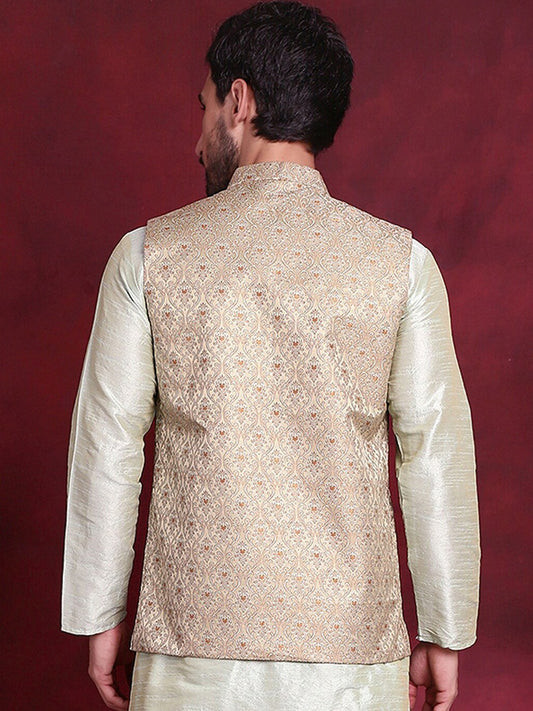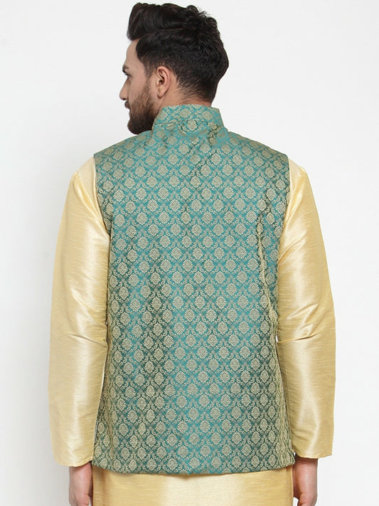 Buy Men’s Green & Gold-Toned Woven Nehru Jacket – Elegant & Stylish | Indiaista