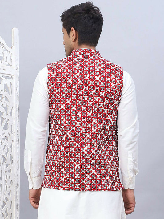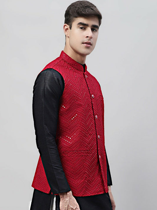 Buy Maroon Embroidered Nehru Jacket for Men | Mandarin Collar & Sequins | Indiaista