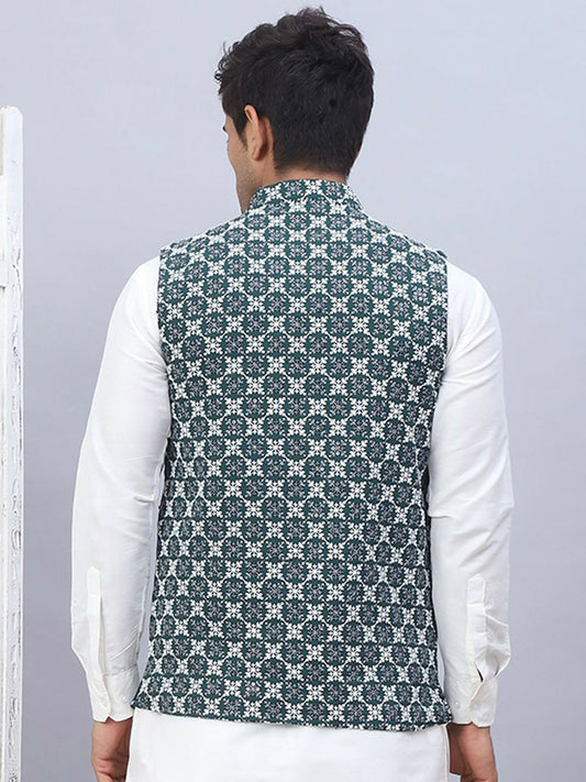 Buy Green Mirror Work Embroidered Nehru Jacket for Men – Wedding & Ethnic Wear | Indiaista