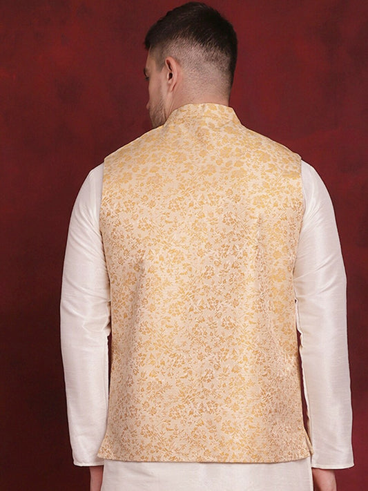 Men’s Cream & Gold Nehru Jacket – Silk Blend Ethnic Sleeveless Vest