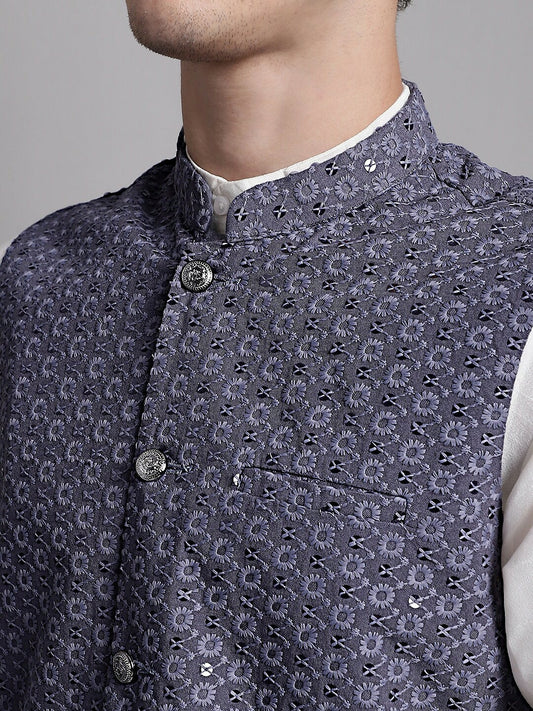 Buy Grey Floral Embroidered Nehru Jacket for Men – Stylish & Elegant | Indiaista