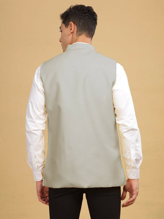 Buy Grey Woven Nehru Jacket for Men – Stylish Sleeveless Jacket with Mandarin Collar | Indiaista