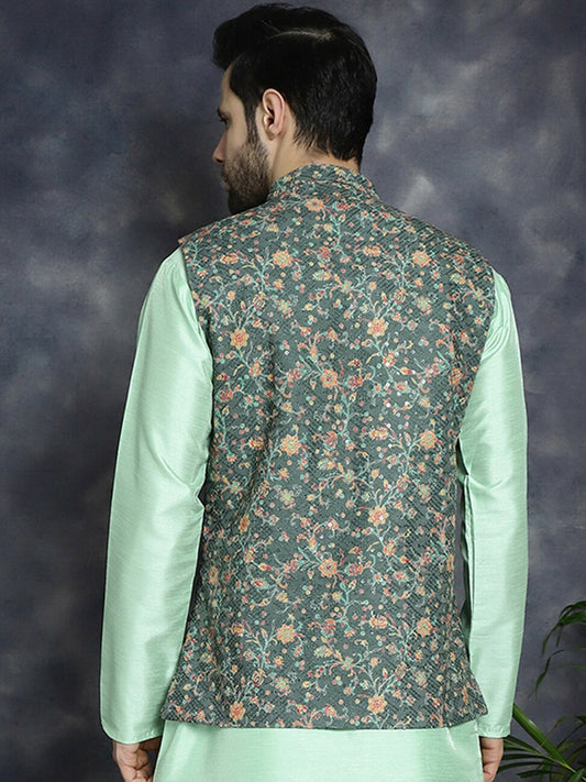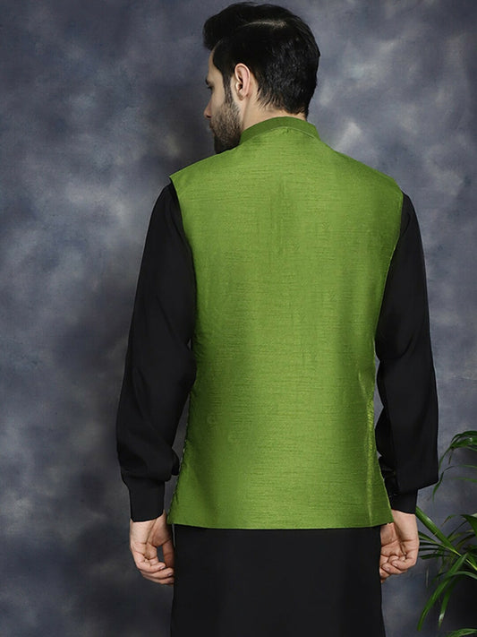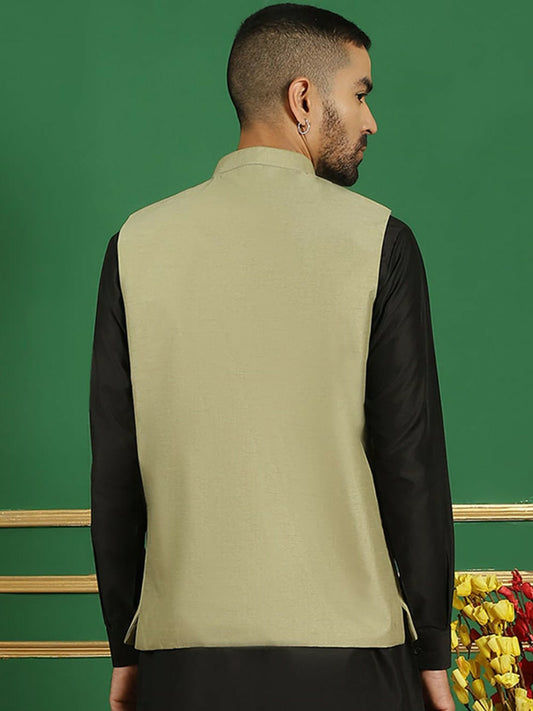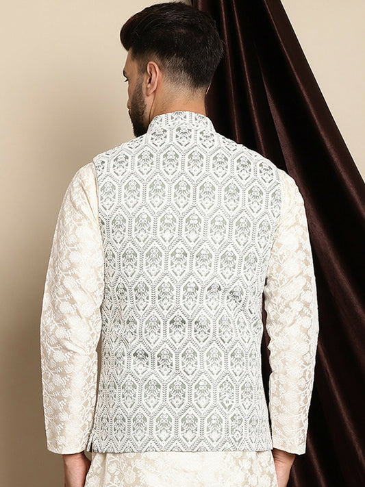 Buy Green & White Embroidered Nehru Jacket for Men – Stylish & Elegant | Indiaista