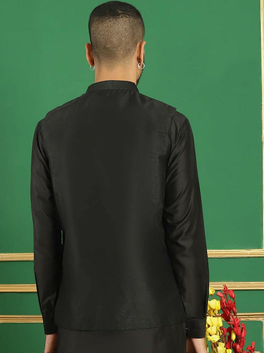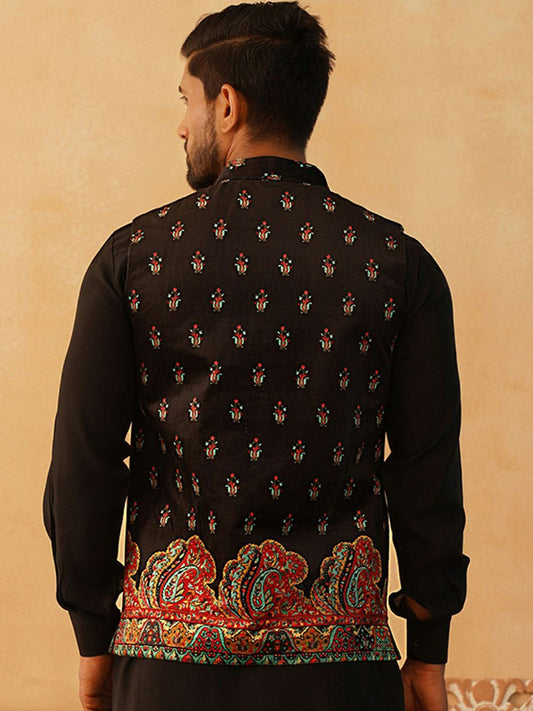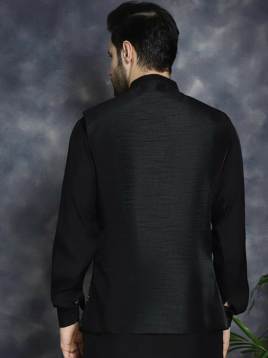 Men’s Black Embroidered Nehru Jacket – Viscose Rayon Sleeveless Vest