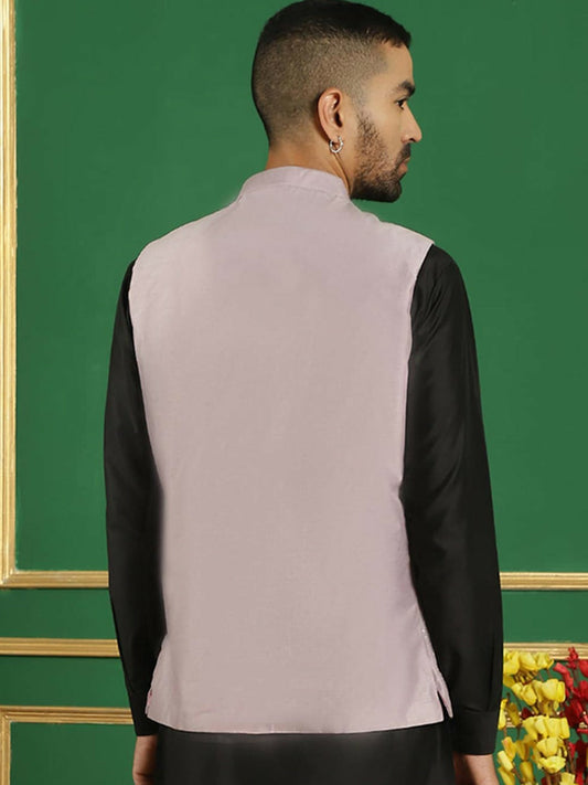 Men's Purple Embroidered Nehru Jacket with Sequins