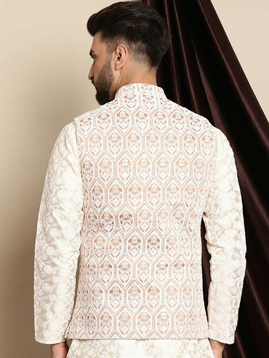 Buy Metalic & White Embroidered Nehru Jacket for Men - Stylish & Elegant | Indiaista