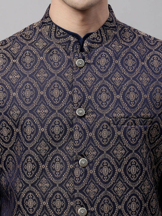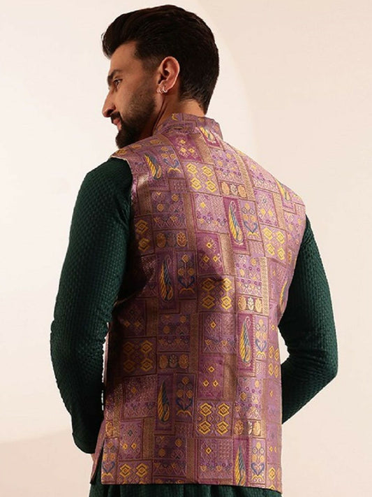 Men’s Geometric Brocade Design Nehru Jacket – Traditional Elegance