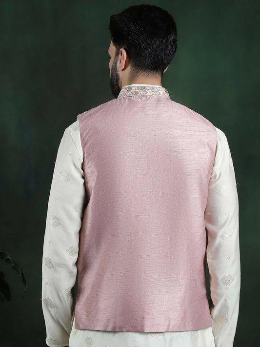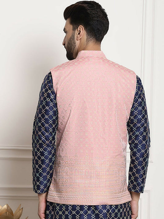 Men’s Pink Jacquard Woven Nehru Jacket – Elegant Festive Wear