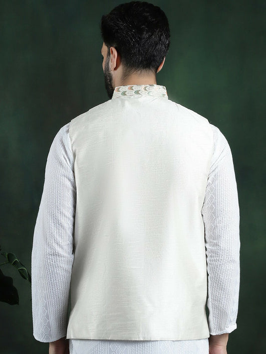 Men’s Embroidered Woven Nehru Jacket – Timeless Elegance