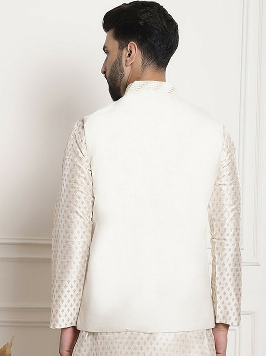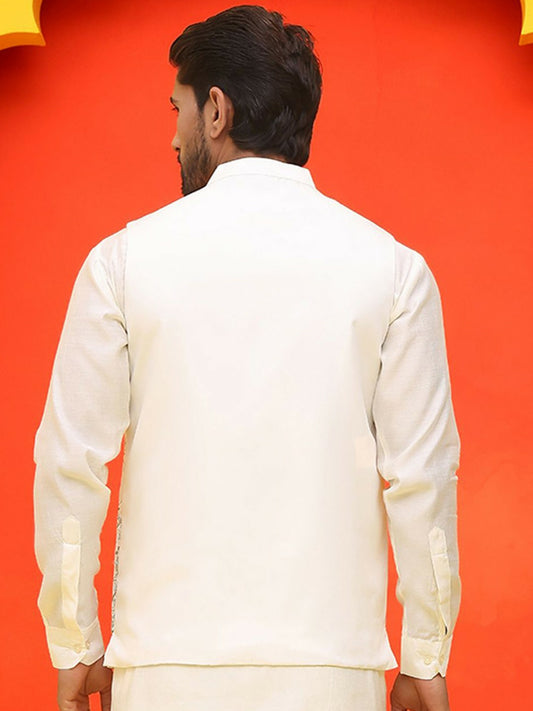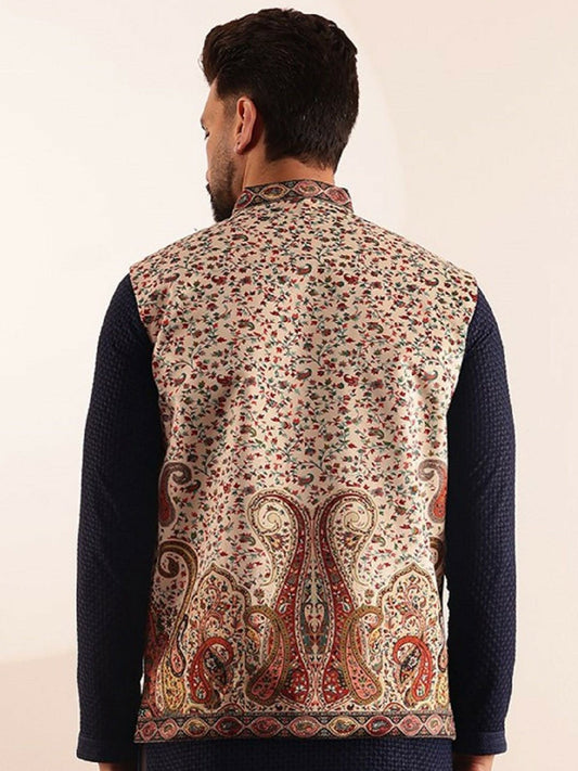 Men’s Cream Paisley Printed Nehru Jacket – Festive Elegance