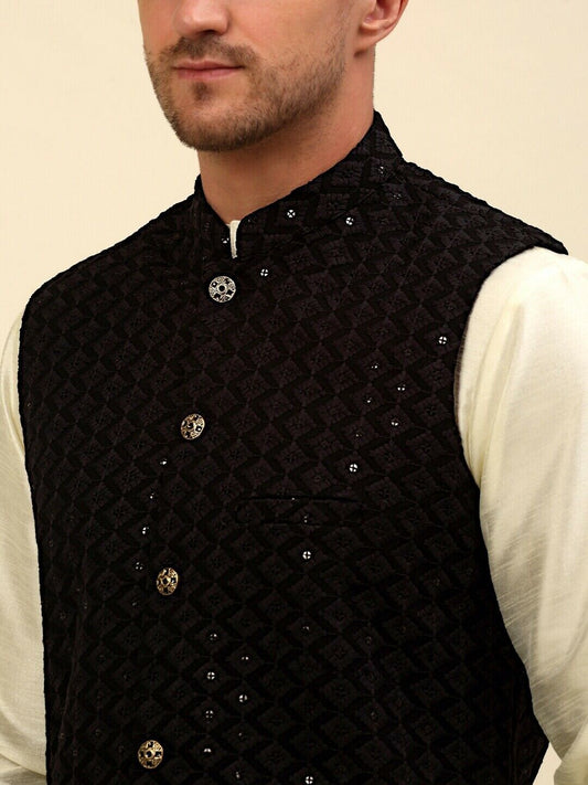 Buy Black Embroidered Nehru Jacket for Men – Indian Wedding & Festive Wear | Indiaista