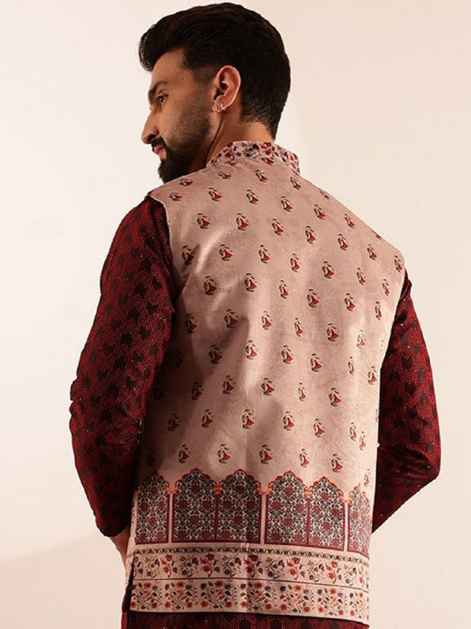 Men’s Maroon Velvet Printed Nehru Jacket – Festive Elegance