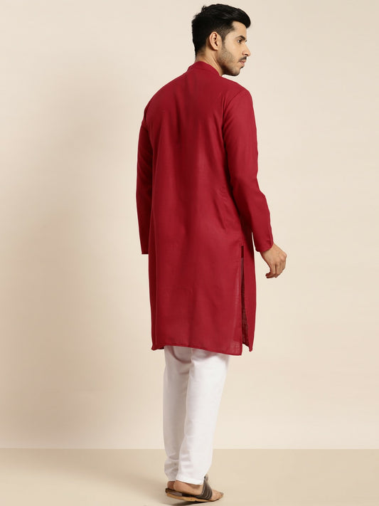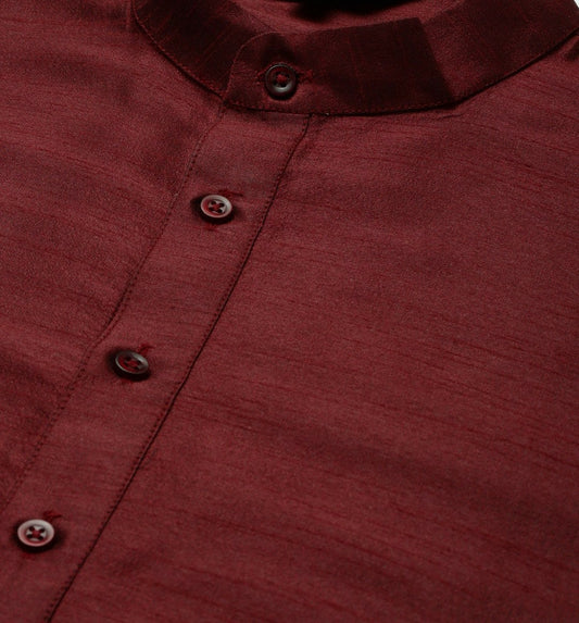 Men's Maroon Solid Kurta – Mandarin Collar, Silk Fabric, Knee-Length | Indiaista