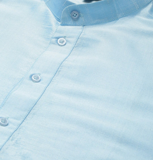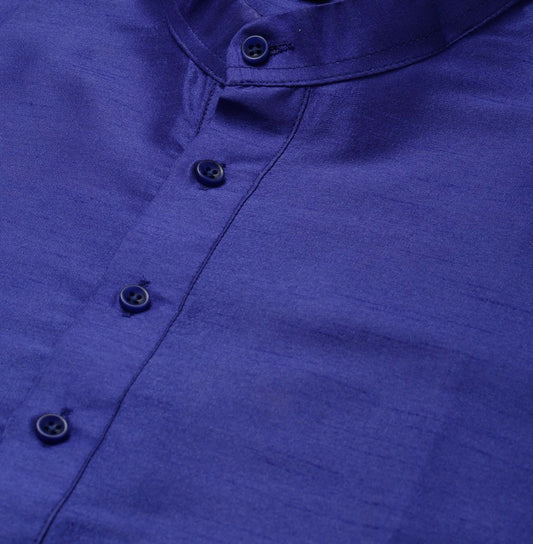 Men's Blue Solid Band Collar Kurta – Silk Fabric, Regular Fit, Knee Length | Indiaista