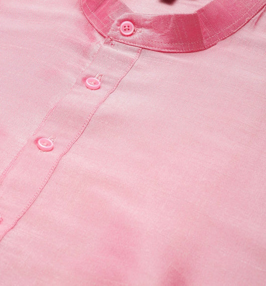 Men’s Pink Solid Kurta – Mandarin Collar, Regular Silk, Knee-Length | Indiaista