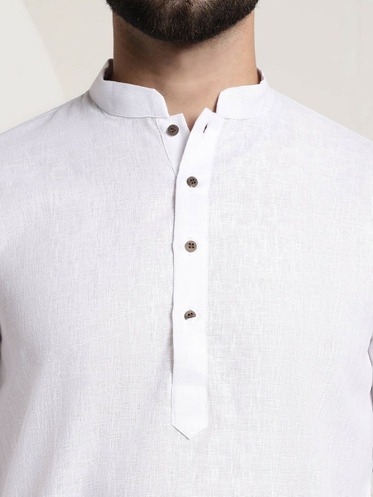 Men's White Checked Dobby Cotton Kurta – Mandarin Collar, Knee-Length, Regular Fit | Indiaista