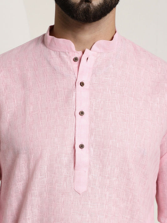Men's Pink Dobby Cotton Kurta – Mandarin Collar, Woven Design, Knee-Length | Indiaista