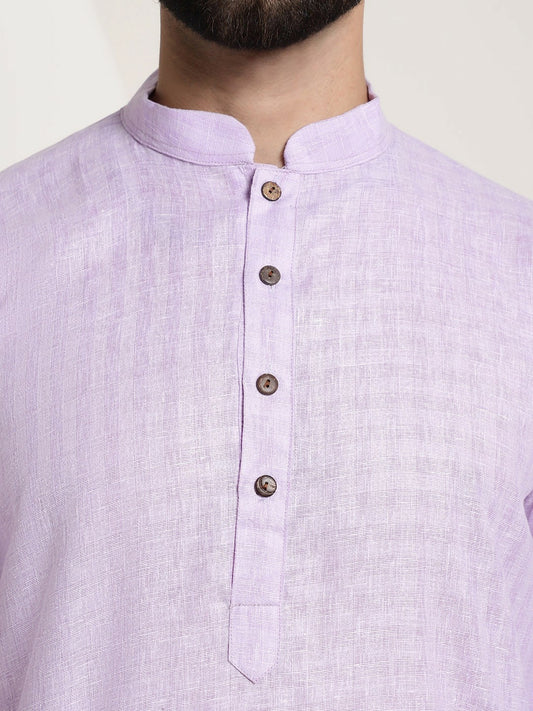 Men’s Lavender Checked Dobby Kurta – Mandarin Collar, Knee Length, Regular Fit | Indiaista