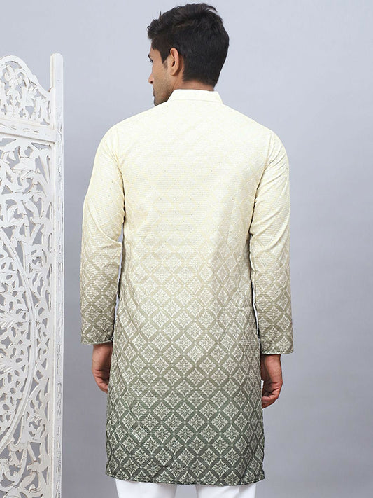 Men’s Grey Ombre Floral Kurta – Sequinned Mandarin Collar