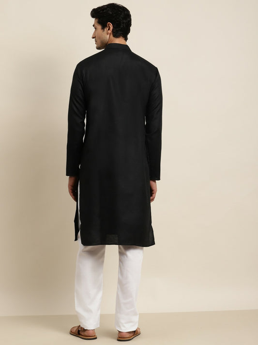 Men’s Black Mandarin Collar Kurta – Solid Cotton, Knee-Length, Regular Fit | Indiaista