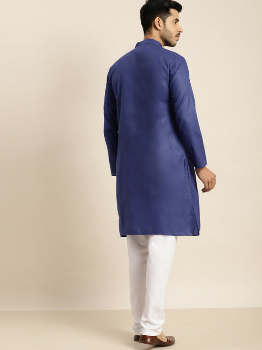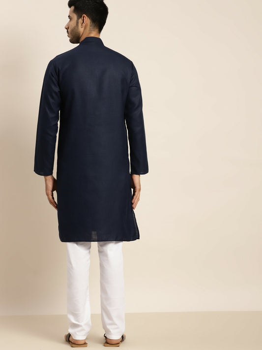 Men's Navy Blue Indigo Kurta – Solid, Mandarin Collar, Knee-Length Cotton Kurta | Indiaista