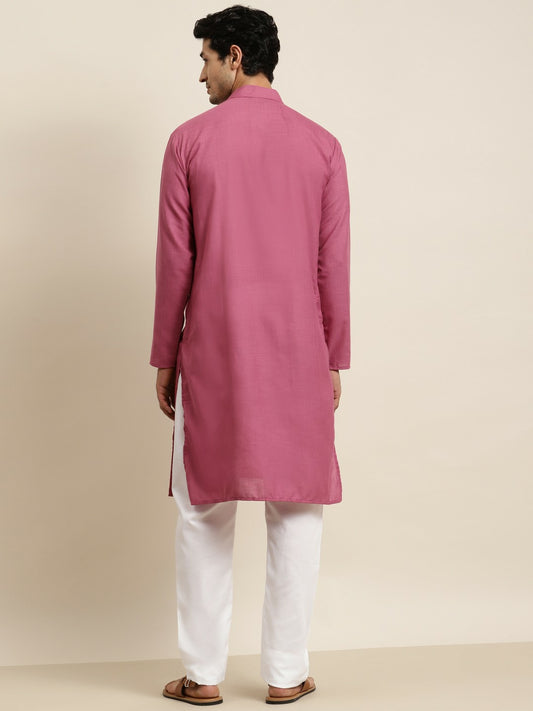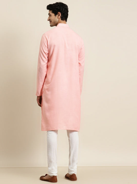 Men's Pink Solid Kurta – Mandarin Collar, Cotton Fabric, Knee Length | Indiaista
