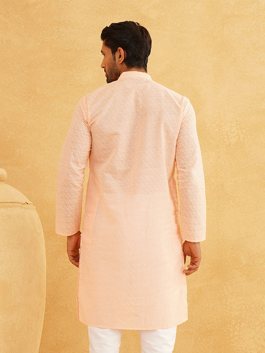 Men’s Peach Ethnic Motif Kurta – Sequinned with Mandarin Collar