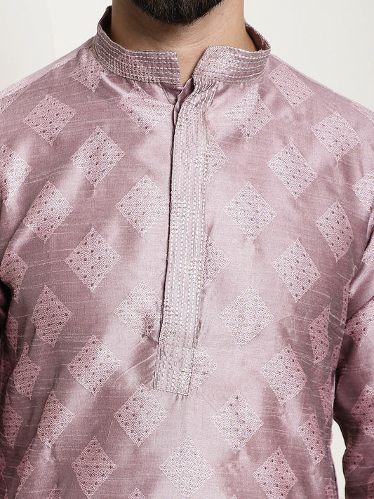 Men's Purple & Gold Ethnic Motifs Kurta – Silk, Mandarin Collar, Knee-Length for Weddings & Festivals | Indiaista