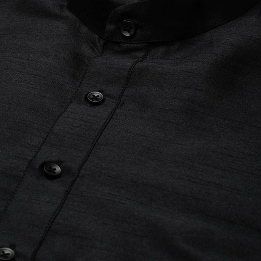 Men's Black Solid Mandarin Collar Kurta – Knee Length, Regular Silk, Straight Fit | Indiaista