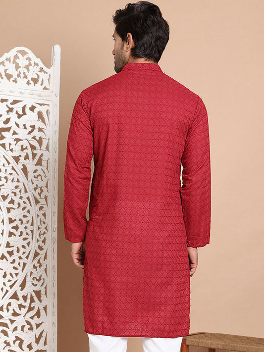 Men’s Maroon Chikankari Embroidered Cotton Kurta