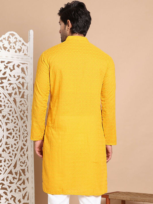 Men’s Mustard Yellow Chikankari Embroidered Cotton Kurta