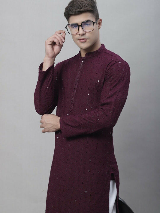 Men’s Embroidered Cotton Kurta – Indian Wedding, Bridal & Pakistani Ethnic Kurta with Sequins | Indiaista