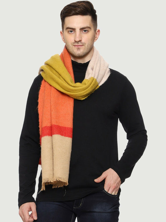 Men’s Colourblocked Wool Muffler – Beige, Red & Purple | Stylish & Warm
