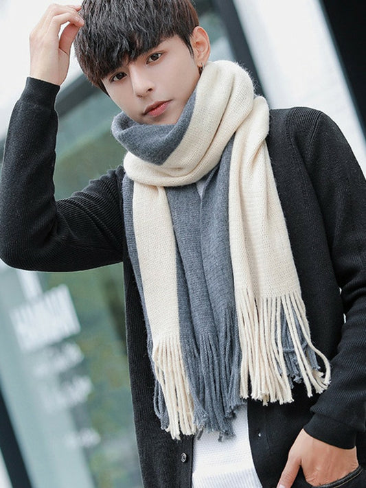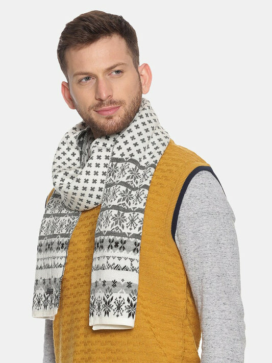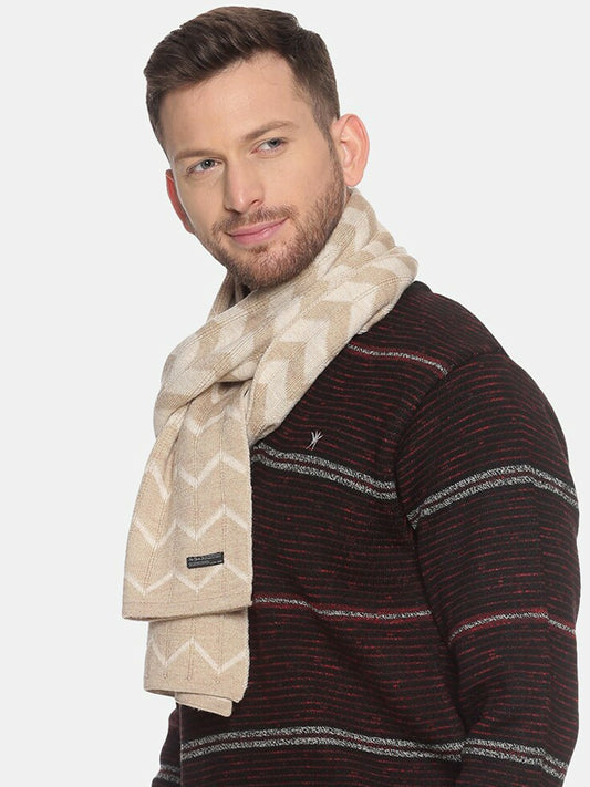 Buy Beige & Grey Patterned Acrylic Muffler for Men – Stylish & Warm | Indiaista