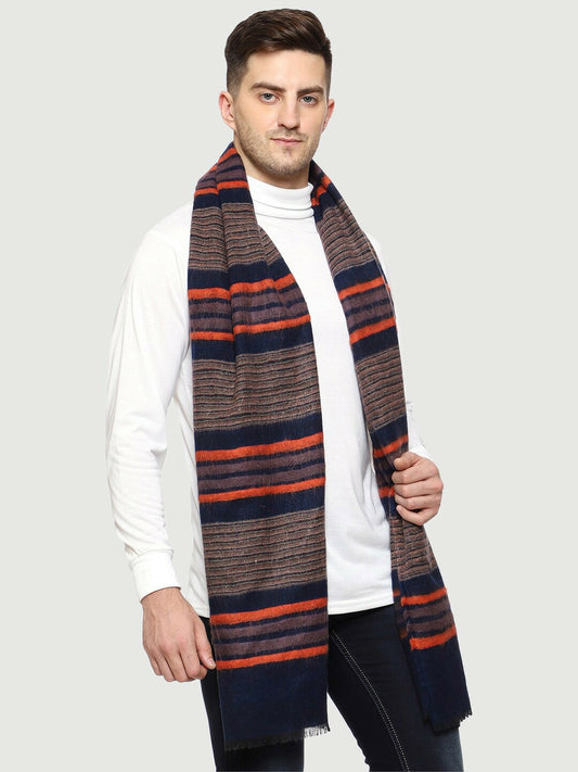 Navy Blue & Orange Striped Wool Muffler for Men – Stylish & Warm | Indiaista