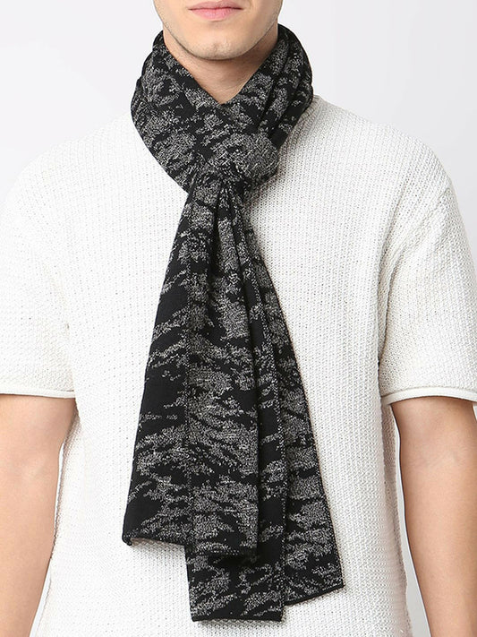 Buy Black & Grey Knitted Patterned Muffler for Men – Stylish & Warm | Indiaista