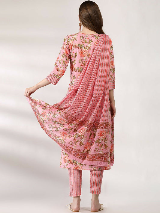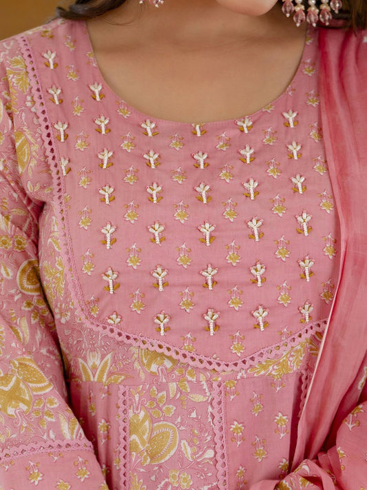 Pink Floral Anarkali Kurta Set with Dupatta